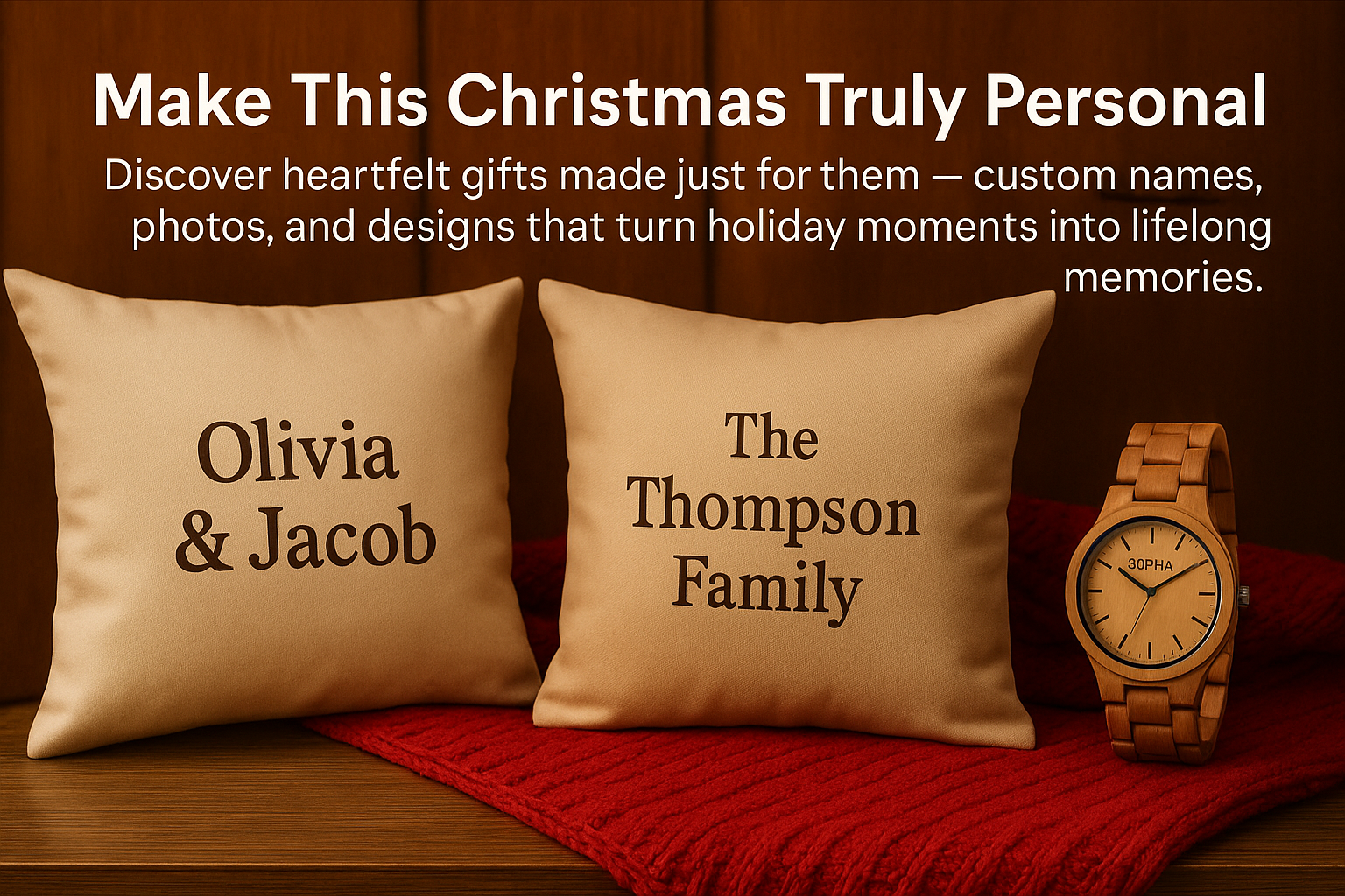 Every product is selected for quality, comfort, and style—then many are elevated with custom names, dates, or heartfelt messages. From a cozy Christmas blanket to a personalized keepsake, our goal is simple: help you give gifts that get kept, used, and loved for years.