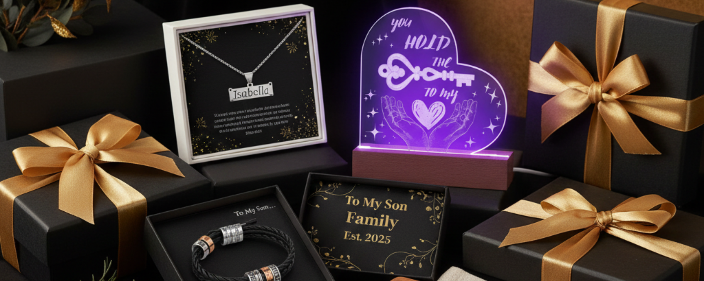 Every product is selected for quality, comfort, and style—then many are elevated with custom names, dates, or heartfelt messages. From a cozy Christmas blanket to a personalized keepsake, our goal is simple: help you give gifts that get kept, used, and loved for years.