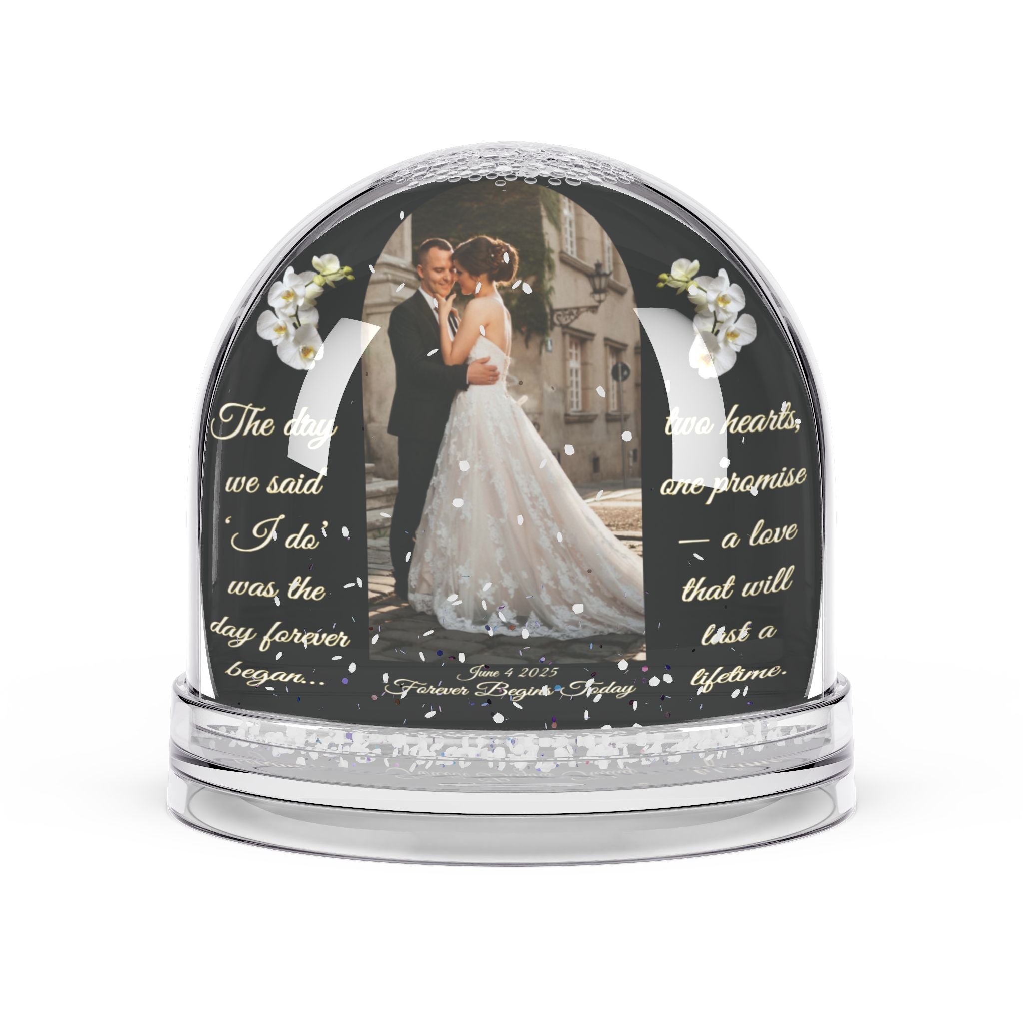 Every shake brings your most beautiful day back to life — a symbol of everlasting love, captured in glass and snow.