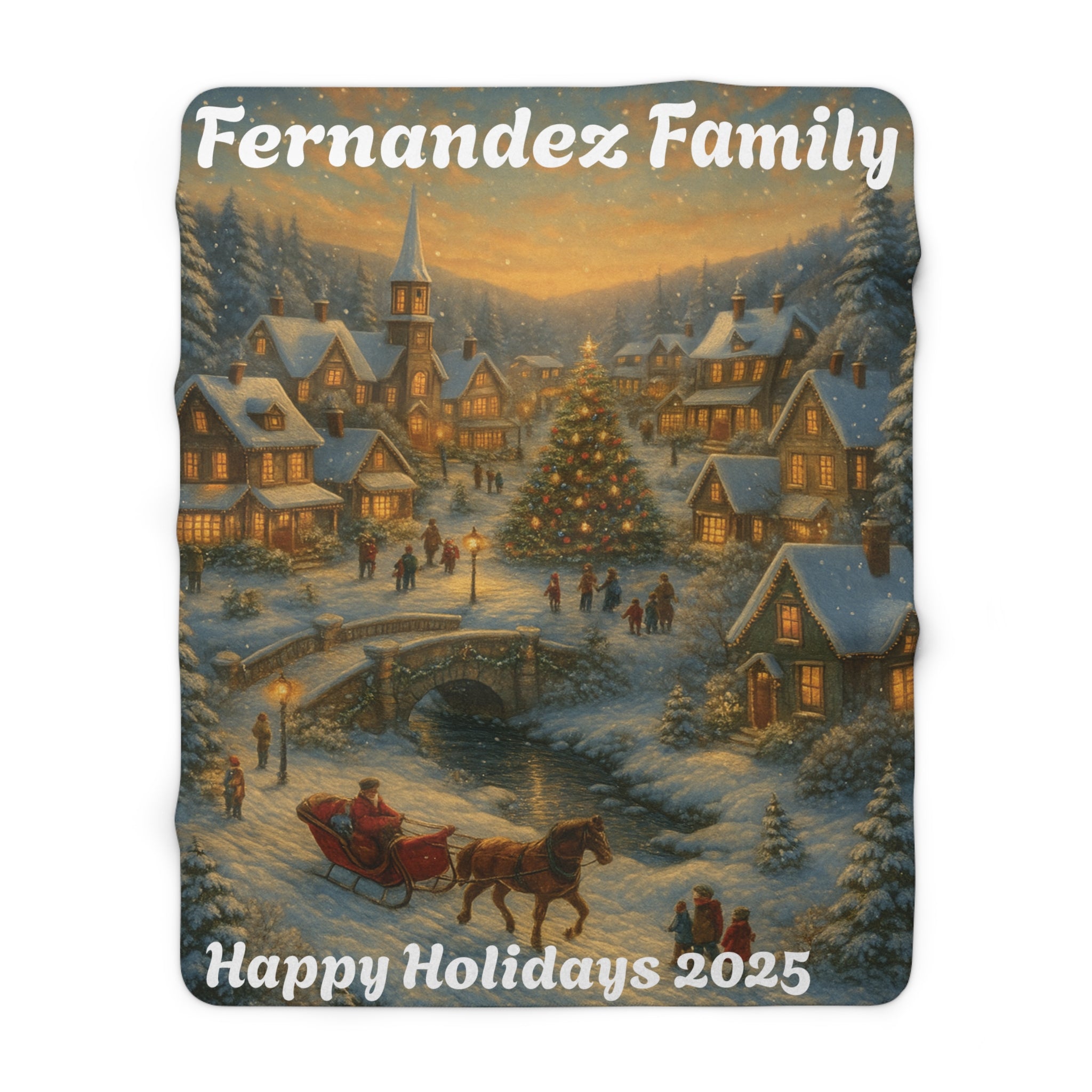 Personalized Christmas Village Blanket – Custom Family Name Holiday Throw, Cozy Winter Scene Keepsake 2025