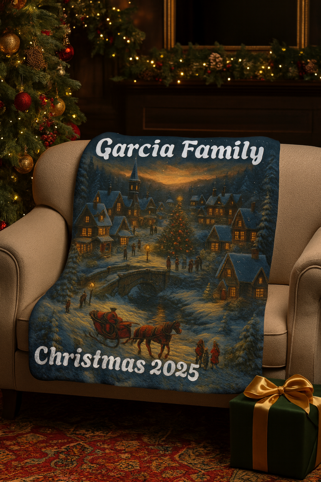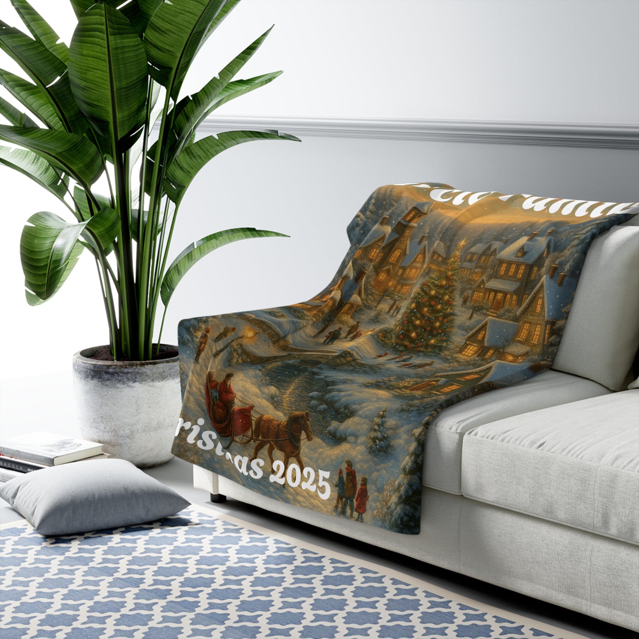 Each blanket is customized with your family name and Christmas year, making it a meaningful keepsake for holiday décor, movie nights, or gifting.