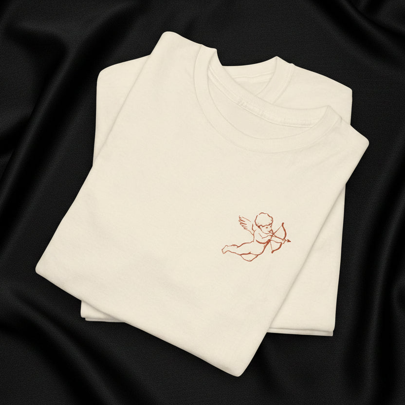 Soft, understated, and quietly expressive, this Minimal Cupid T-Shirt is designed for those who appreciate meaning in the details. Featuring a small cupid illustration placed gently over the heart, this tee feels like a private sentiment — a subtle symbol of love, creativity, and connection.