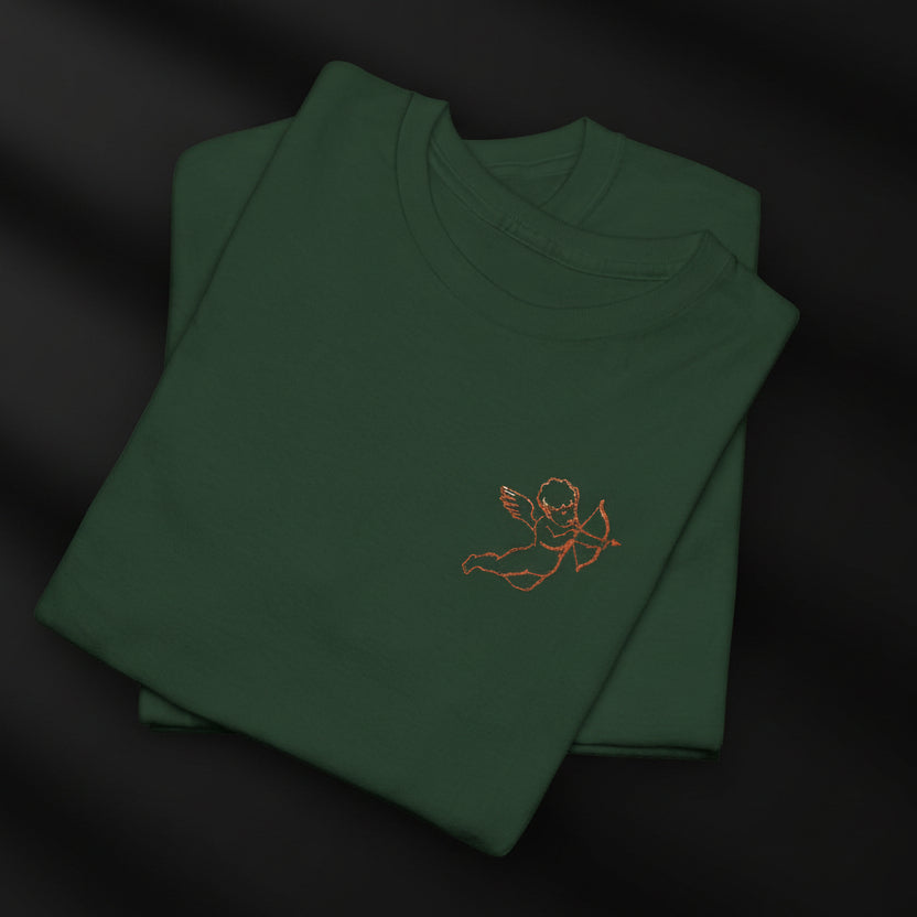 Minimal Cupid T-Shirt – Subtle Heart Illustration Cotton Tee