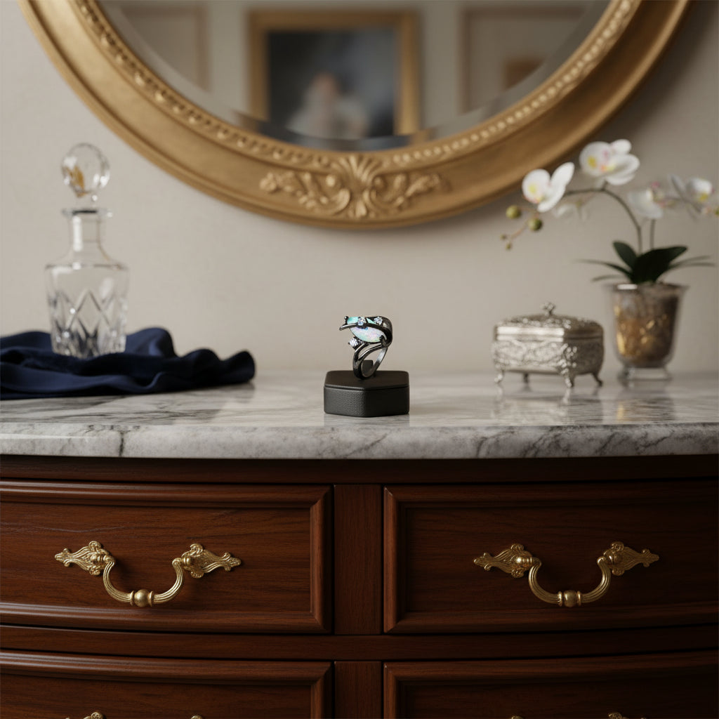 - Elegant and timeless, featuring diamond-like accents and a bold central opal that reflects your unique personality.