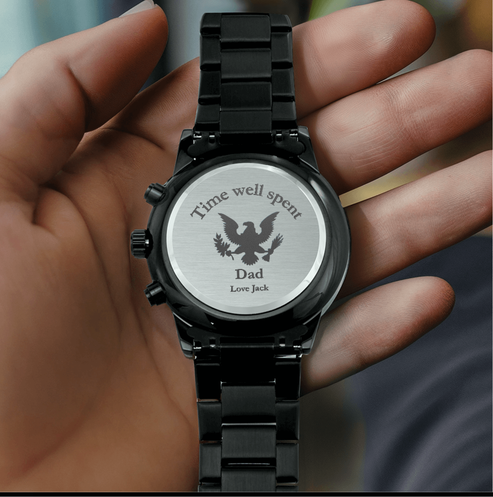 Personalize the back with a meaningful engraving — such as “Time well spent, Dad. Love, Jack” — or create your own heartfelt message to make it truly one of a kind. Whether for Father’s Day, Christmas, a birthday, or simply to say thank you, this watch will be a keepsake he’ll treasure forever.