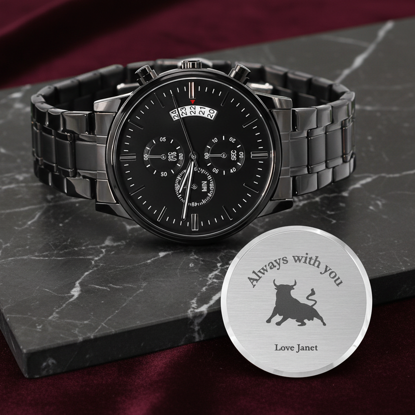 Celebrate your dad with a gift as timeless as the moments you’ve shared. This Engraved Black Chronograph Watch is more than an accessory — it’s a daily reminder of love, pride, and gratitude. With its sleek black stainless-steel design and precision quartz movement, this watch combines durability with elegance for everyday wear.