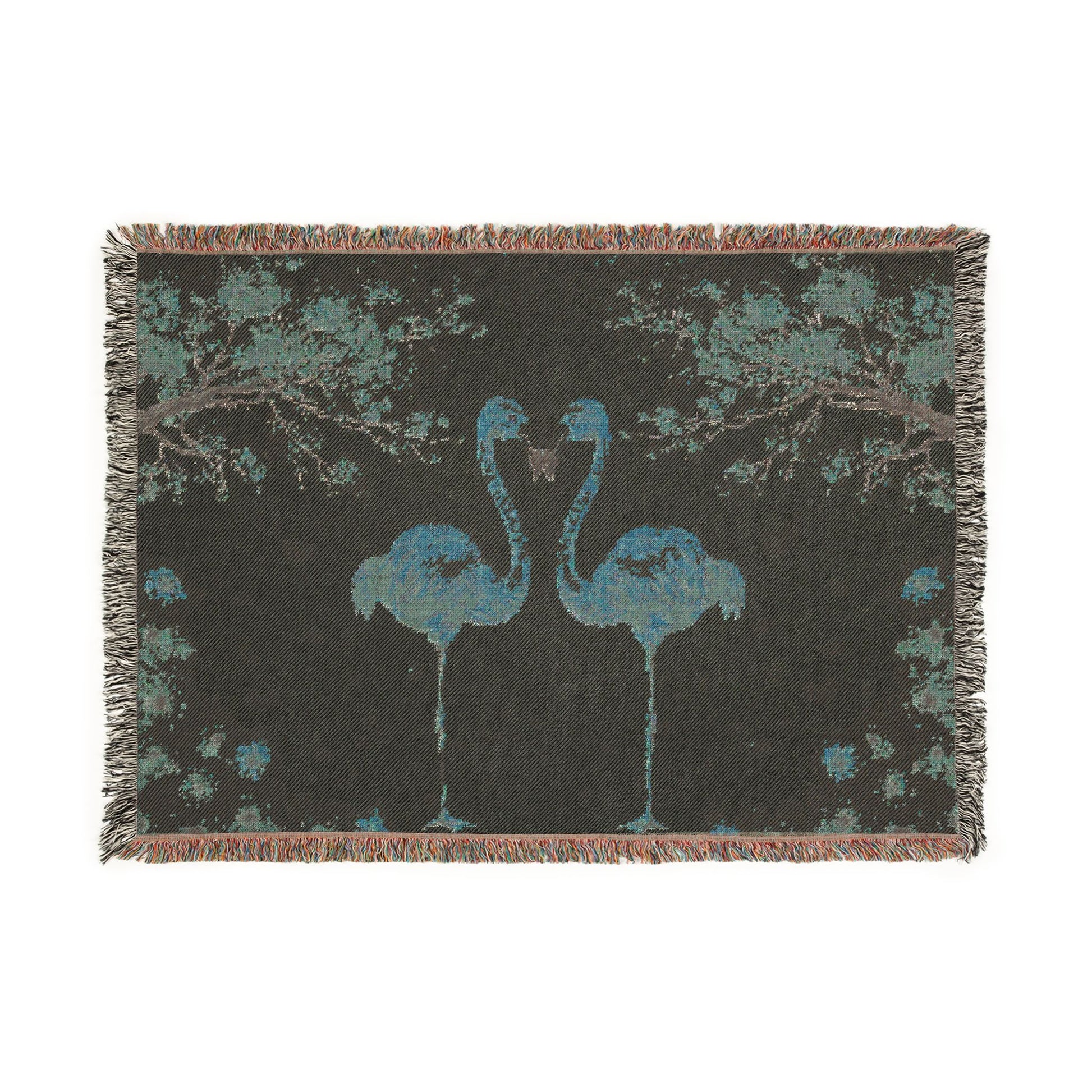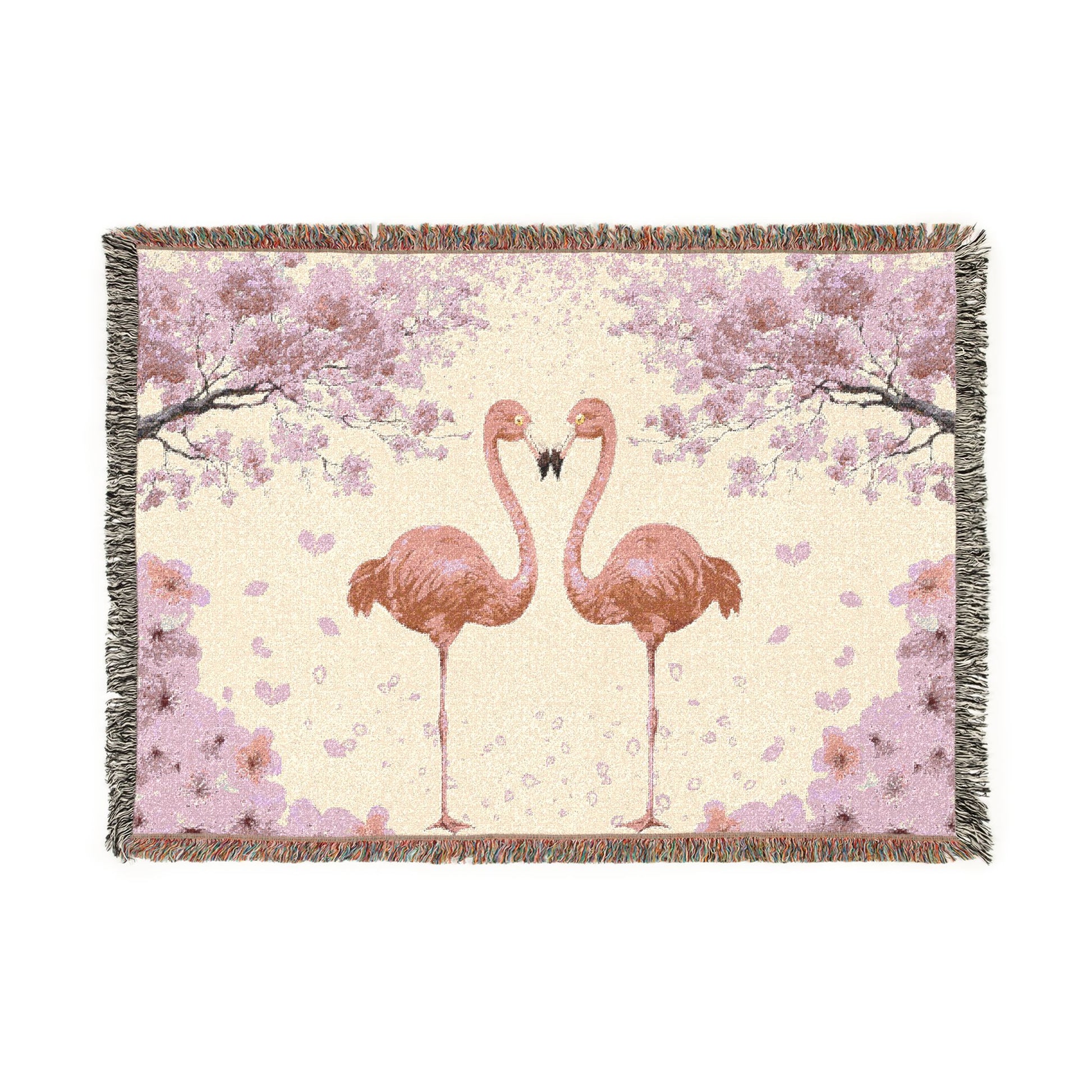 Flamingo Woven Throw Blanket —Pink Cherry Blossom Floral Design