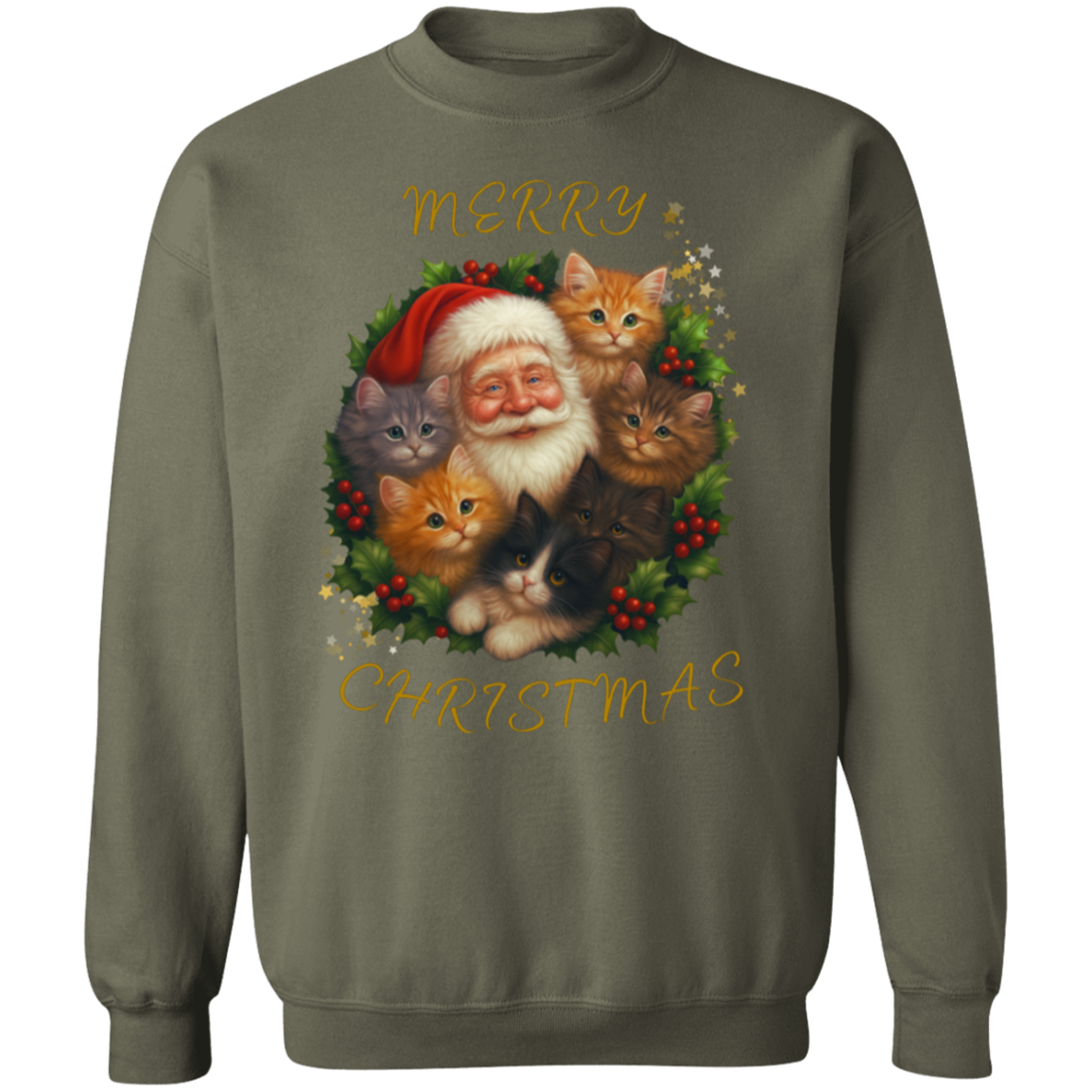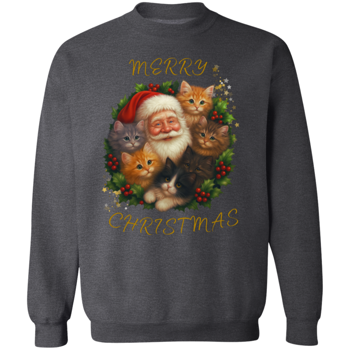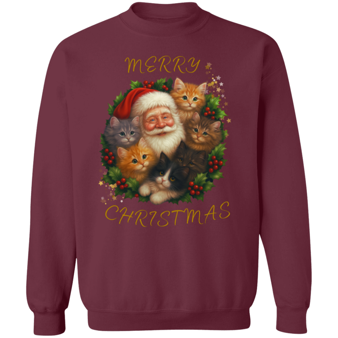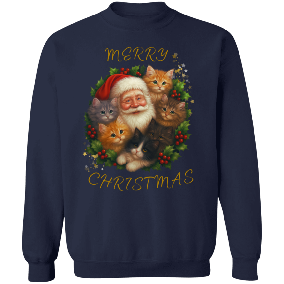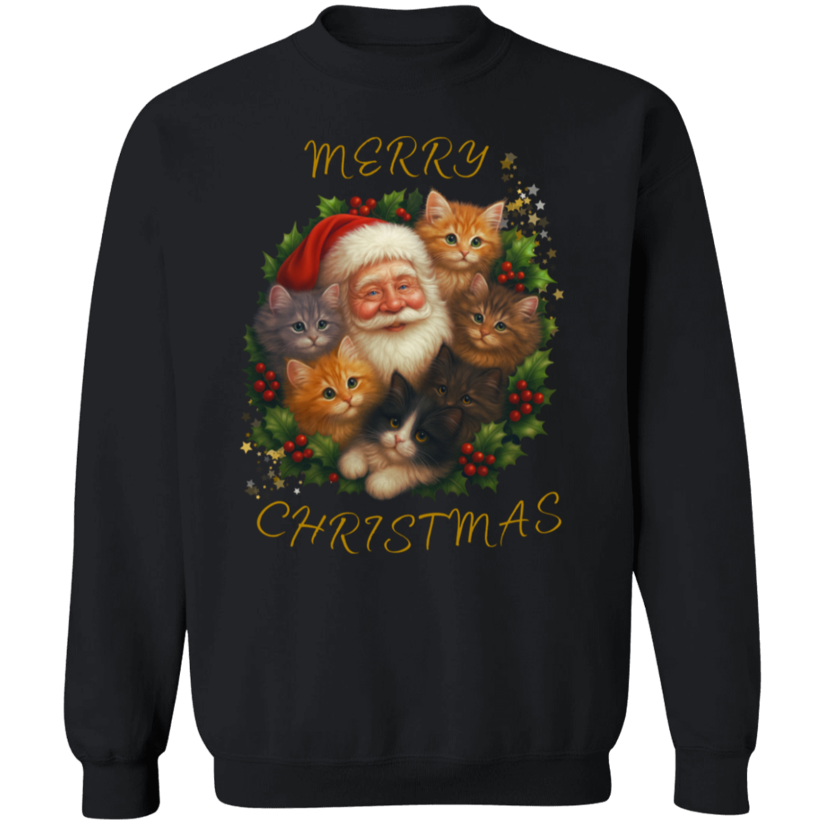Santa and Kittens Christmas Sweatshirt – Cute “Merry Christmas” Holiday Sweater