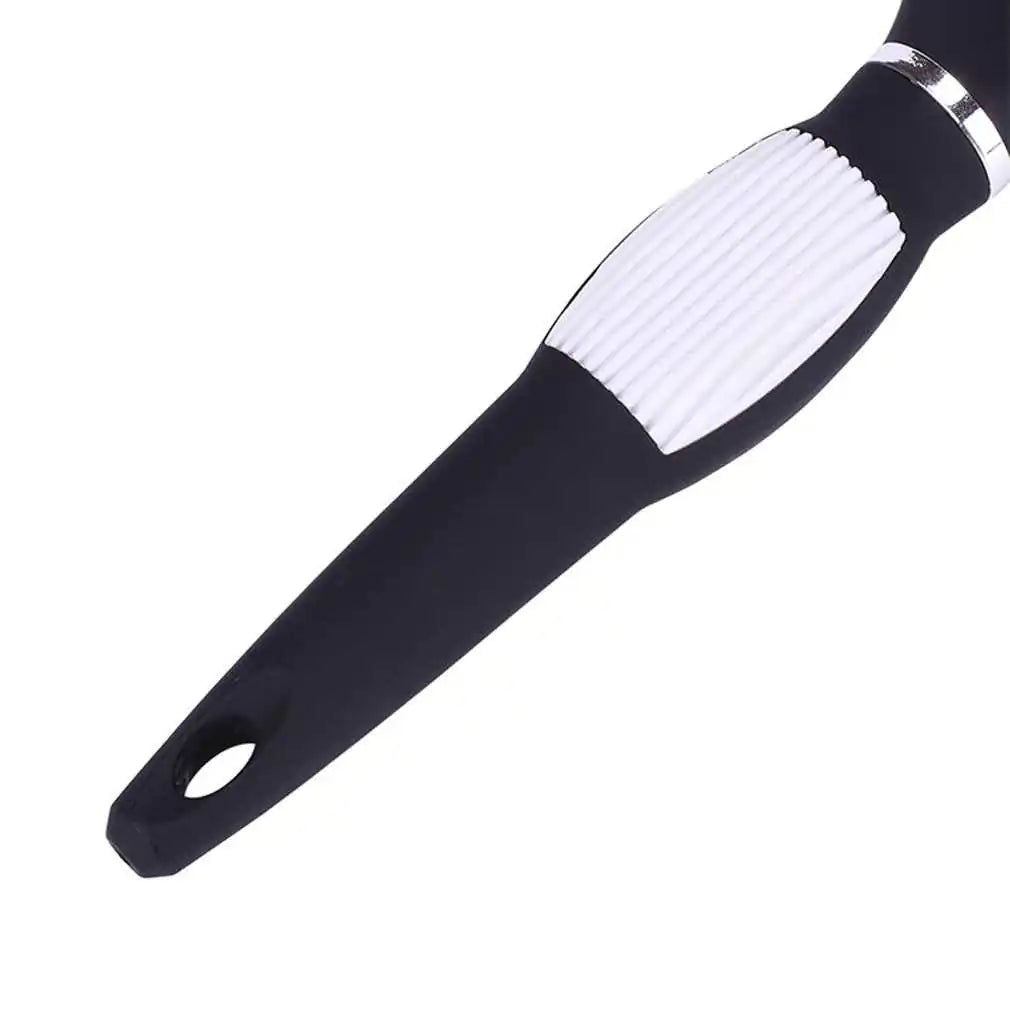 Flexible nylon teeth help gently detangle knots without pulling, while the curved design offers a soothing scalp massage during use.